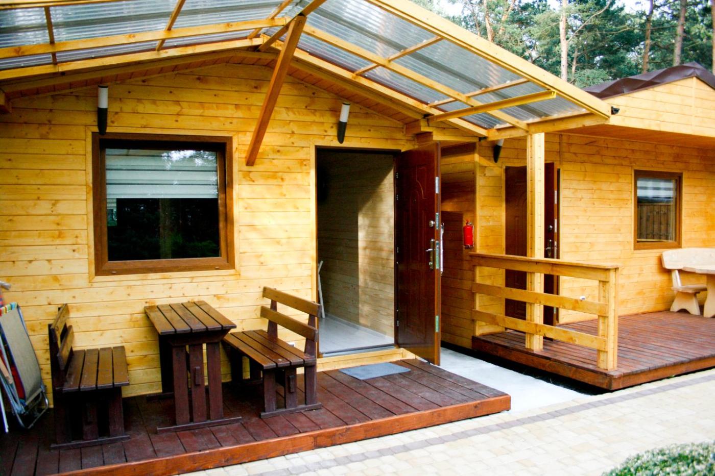 Domek z 1 sypialnią. This chalet features 1 living room, 1 separate bedroom and 1 bathroom with a shower. Guests will find a stovetop, a refrigerator and kitchenware in the kitchenette. The chalet also comes with a barbecue. Boasting a terrace with garden views, this chalet also features an electric kettle and a flat-screen TV. The unit has 3 beds. Domek - 5 osobowy. Powierzchnia pokoju ok.: 35 mkw.